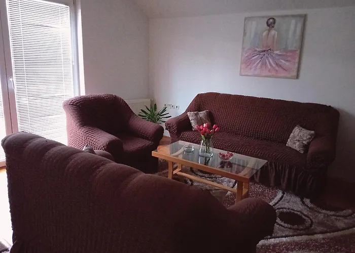 Along with self-catering amenities like a fully equipped kitchen, the property also offers a dining area. The nearest bus stop To Sarajevo is a mere 10 minutes on foot from the accommodation. Apartmani Lazaro boasts a range of luxurious amenities, including a picnic area and a satellite flat-screen for the ultimate relaxation experience. The apartment features a patio and views of the garden from it.